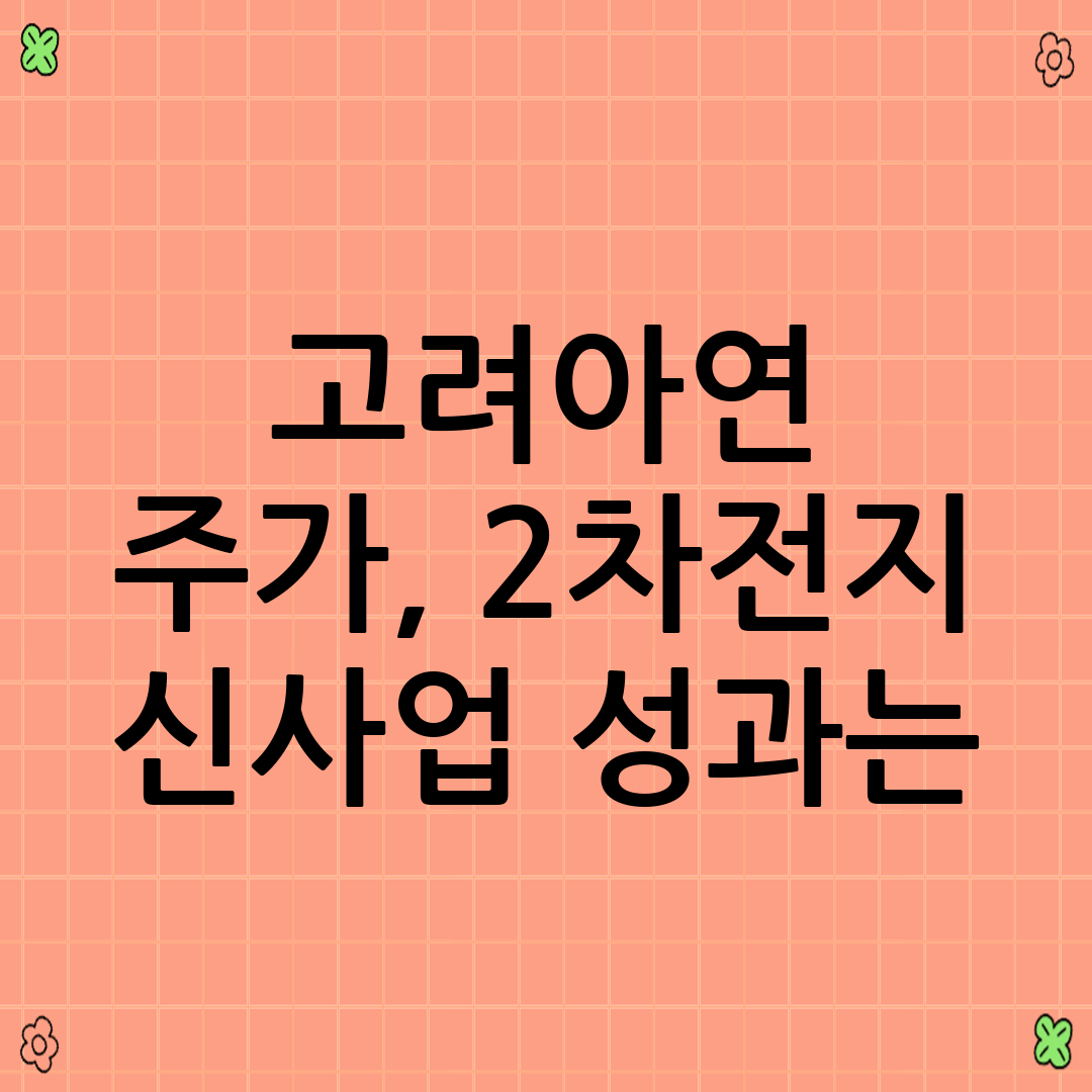 • 기대 효과: 2차전지 신사업이 성공적으로 추진될 경우, 고려아연은 새로운 성장 동력을 확보하고 기업 가치를 크게 높일 수 있을 것으로 기대됩니다. 또한, 친환경 에너지 시장 성장에 기여하고 국가 경제 발전에도 이바지할 수 있습니다.