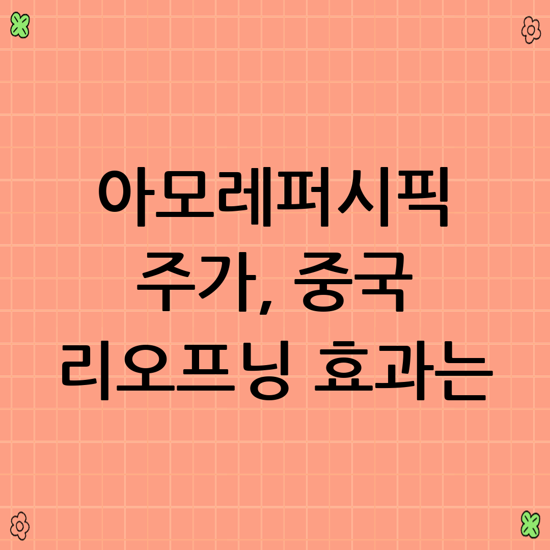 최근 아모레퍼시픽 주가에 대한 투자자들의 관심이 뜨겁습니다. 특히 중국 리오프닝(경제 활동 재개) 효과가 아모레퍼시픽의 실적에 미칠 영향에 대한 기대감이 큰 상황입니다. 이 글에서는 아모레퍼시픽 주가에 영향을 미치는 다양한 요인들을 분석하고, 중국 리오프닝 효과를 심층적으로 전망하여 투자 전략에 도움이 될 정보를 제공하고자 합니다.