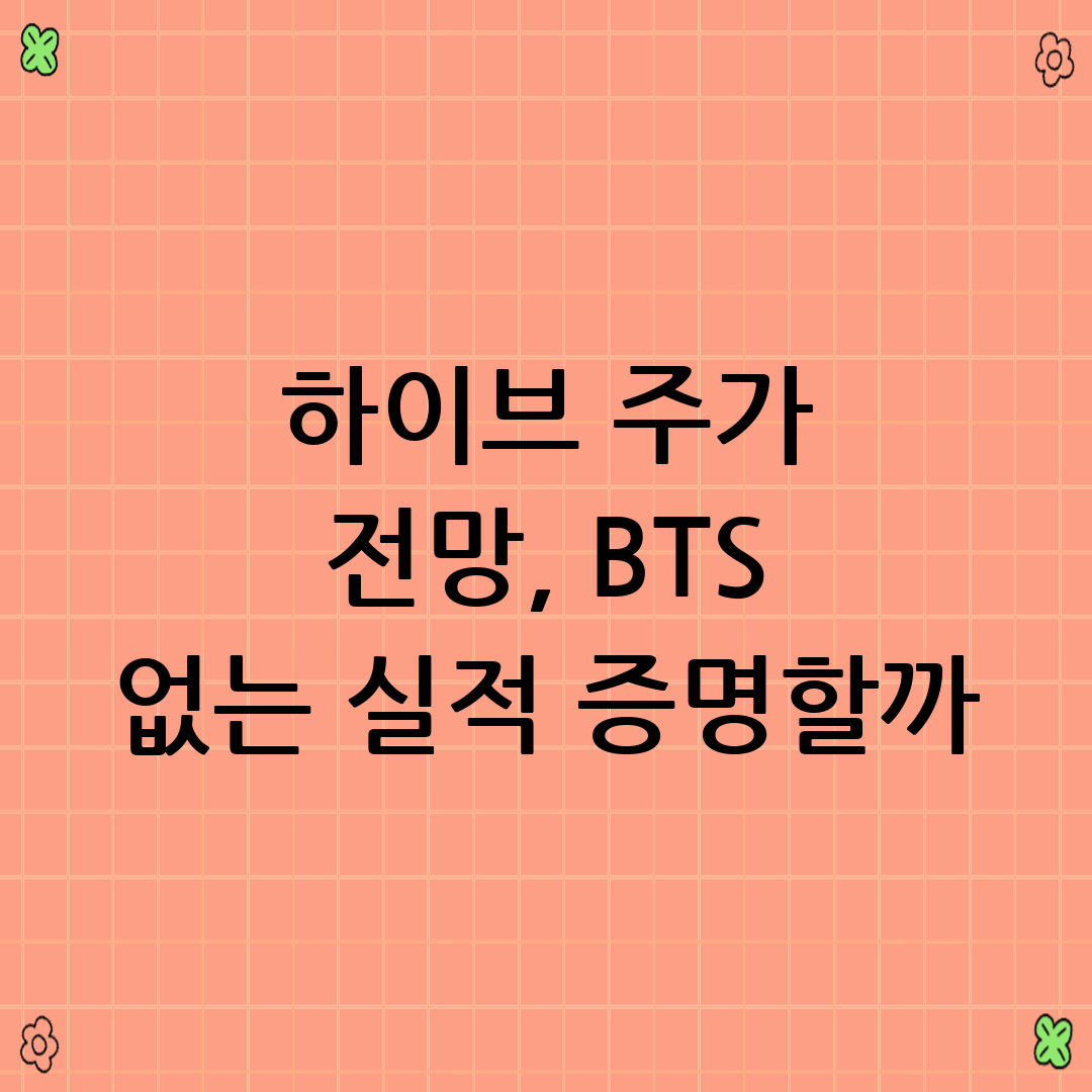 하이브의 주가 전망에 대한 투자자들의 관심이 뜨겁습니다. 특히, BTS의 활동 중단 이후 하이브가 어떤 실적을 보여줄 수 있을지가 중요한 관건으로 떠오르고 있습니다. 이 글에서는 하이브의 현재 상황과 앞으로의 성장 가능성을 다각도로 분석하여 투자자들에게 유용한 정보를 제공하고자 합니다.