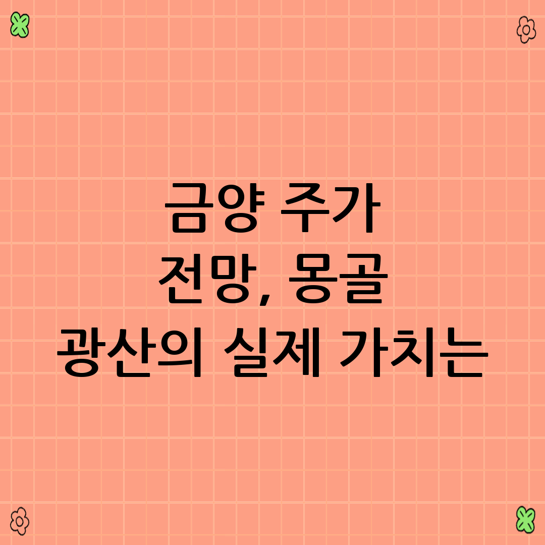 목표: 이 글을 통해 금양 주가 전망과 몽골 광산의 실제 가치에 대한 심층적인 정보를 제공하고, 투자자들이 합리적인 투자 결정을 내릴 수 있도록 돕는 것을 목표로 합니다.