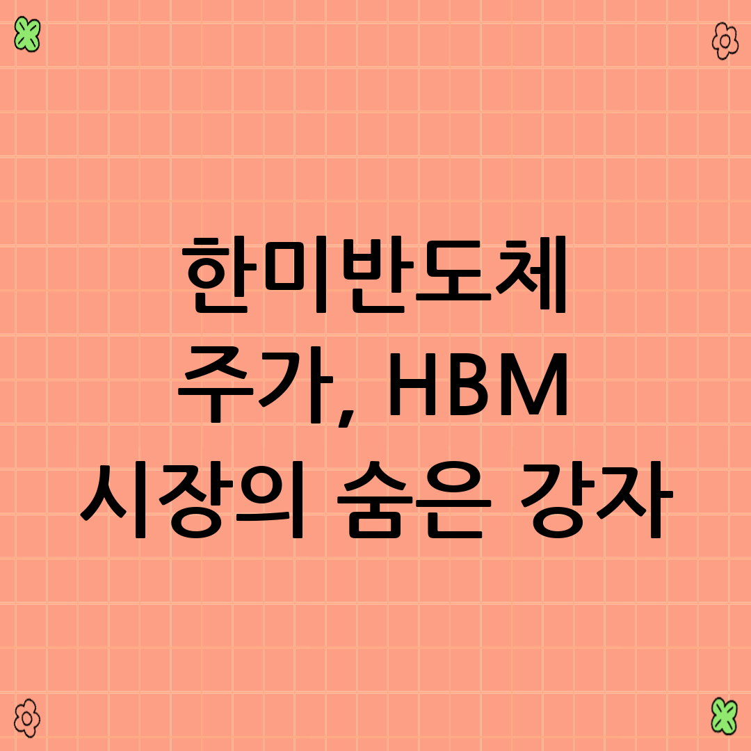 최근 한미반도체 주가가 연일 화제입니다. 특히 HBM(High Bandwidth Memory) 시장에서의 성장 가능성이 부각되면서 투자자들의 관심이 집중되고 있습니다. 과연 한미반도체는 HBM 시장의 숨은 강자일까요? 그리고 앞으로의 주가 전망은 어떠할까요? 이 글에서는 한미반도체의 현재 상황과 미래 성장 가능성을 심층적으로 분석하여 투자자 여러분의 현명한 판단을 돕고자 합니다.