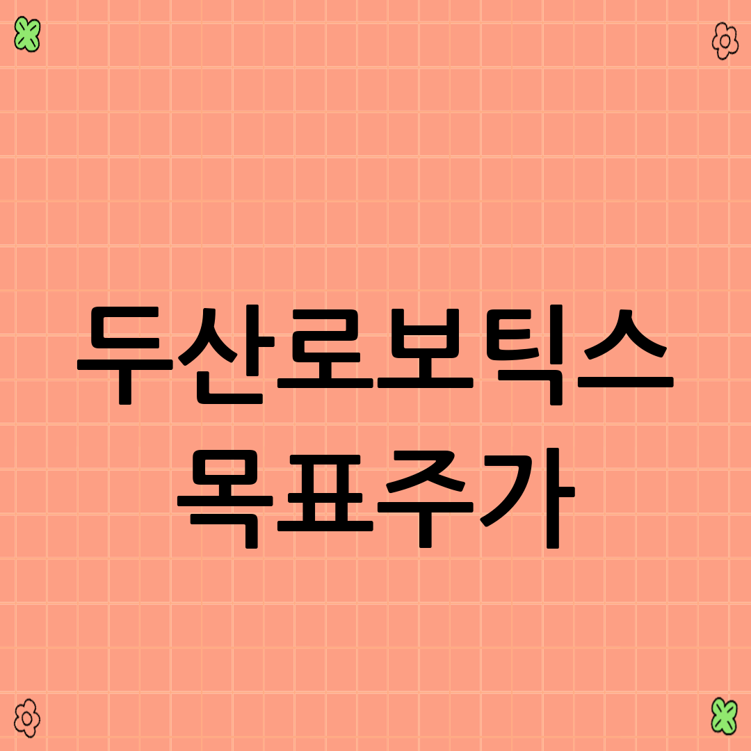 두산로보틱스의 목표주가는 성장성과 고평가 요인을 종합적으로 고려하여 산정해야 합니다. 증권사들은 다양한 분석 방법을 통해 두산로보틱스의 목표주가를 제시하고 있지만, 투자자들은 자신의 투자 성향과 위험 감수 능력을 고려하여 투자 결정을 내려야 합니다.