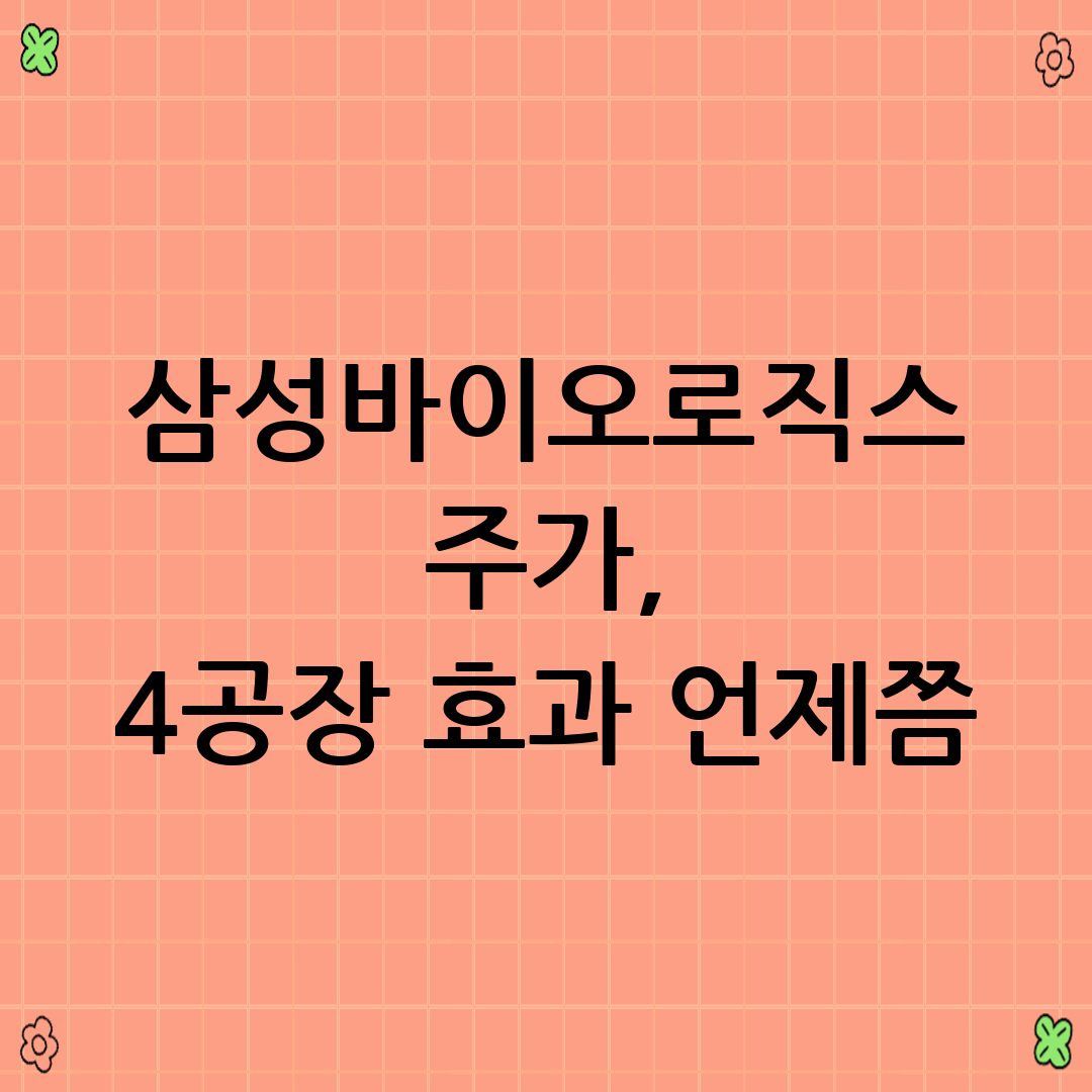 A2: 4공장 가동은 삼성바이오로직스의 생산 능력을 확대하고, 수익성을 개선하며, 신규 고객을 유치하는 데 긍정적인 영향을 미칠 것으로 예상됩니다. 하지만 4공장 효과는 단기간에 나타나기보다는 점진적으로 나타날 것으로 전망됩니다.